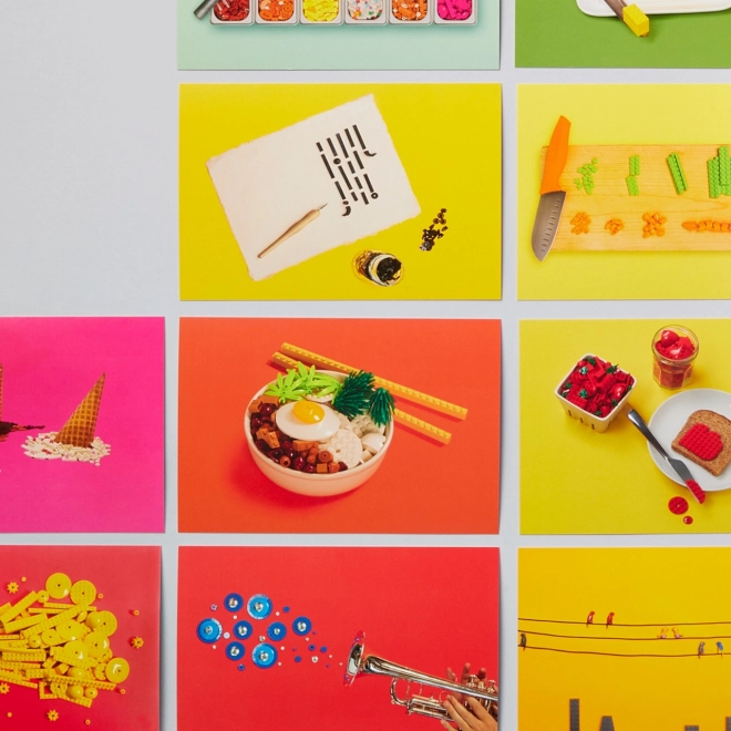 Vælg et motiv til en lykønskning til din bedste ven, skab en original invitation til en fest, eller indram dine favoritter og udstil dem. De sjove og farverige arrangementer vil glæde både børn og voksne LEGO-entusiaster og forvandle hverdagsøjeblikke til noget særligt.
