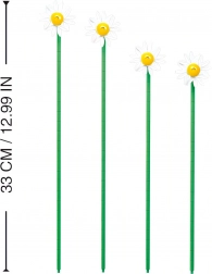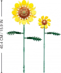 Efter samling får du to markante solsikker og fire fine margueritter – en perfekt dekoration til hjemmet og en original gave til dem, der elsker blomster og byggesæt.