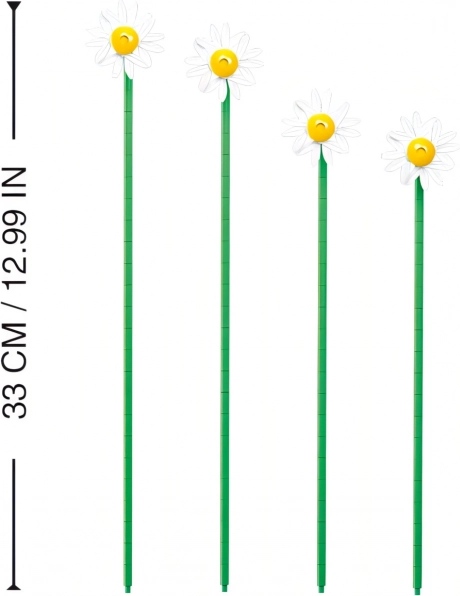 Delene er fremstillet af holdbar, sundhedsmæssigt ufarlig ABS-plast, og byggesættet er fuldt kompatibelt med klodser fra andre producenter, så du kan udvide og tilpasse din buket. I æsken finder du en overskuelig vejledning og alt, hvad du behøver for at samle realistiske blomster.