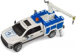 Servicekøretøjet Bruder RAM 2500 er designet til at give en realistisk spiloplevelse for små reparatører. Takket være den drejelige arm på monteringskranen kan børn simulere ægte servicearbejde på bygge- eller landbrugsmaskiner.