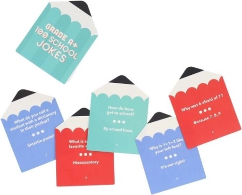 Mød dette sjove sæt af skolevittigheder fra Ridley's Games, som tilbyder 100 kort med muntre spørgsmål og svar. Ideelt til børn og legesyge sjæle i alle aldre.