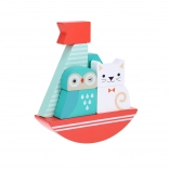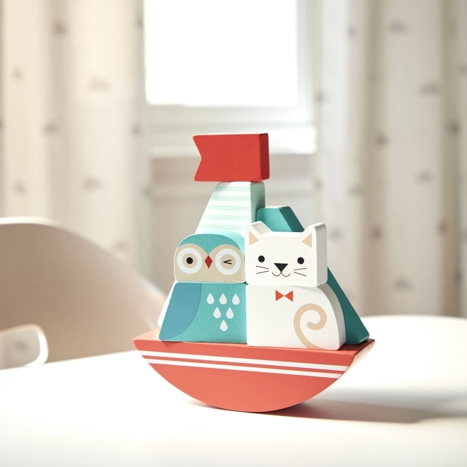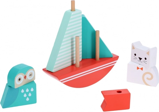 Byg båden og tag på en fantasifuld sejlads! Designet med vuggende bevægelse giver legetøjet en særlig charme og livlighed. En fremragende måde at lære børn finmotorik og koordination mellem øjne og bevægelser.
