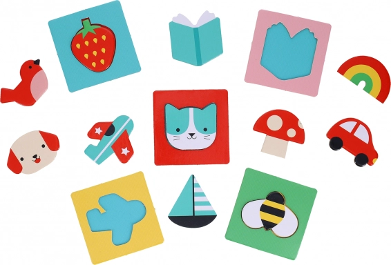 Illustrerede kort og filtbrikker guider børn til at matche motiver, udvikle finmotorik og styrke koncentrationen. Ideelt første didaktiske spil for førskolebørn.