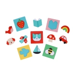Materialer, der er skånsomme mod naturen og sikre for børn, er en selvfølge: kortene er af FSC-papir, og trykket er plantebaseret (soja). Spillet byder på mange varianter – børn kan finde matchende genstande, farver eller motiver efter det angivne kort og dermed træne både logik og ordforråd.