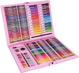 Komplet kreativt sæt i en praktisk lyserød kuffert med 168 dele til både små og store skabere. Det indeholder farveblyanter, tuscher, vokskridt, oliepasteller, akvarelfarver samt nyttigt tilbehør inklusive papir og palet. Takket være de overskuelige rum og bærehåndtag er det ideelt derhjemme, i skolen og på farten.