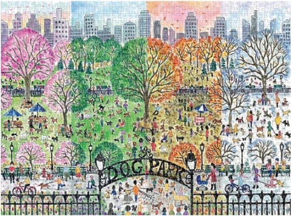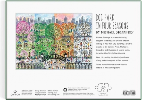 Oplev magien i hundeparken gennem forår, sommer, efterår og vinter. Dette premium-puslespil fra Galison byder på præcist udskårne brikker, glat bagside for ren samling uden støv og førsteklasses tryk, der står skarpt i ethvert lys. Der medfølger også et referencebillede med information om kunstneren.