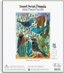 Oplev skønheden i den solrige ørken i et originalt puslespil med fuglemotiver af kunstneren Geninne Zlatkis. 1000 præcist udskårne brikker, mat overflade for naturtro farver, miljøvenlige materialer med FSC-certificering og en solid, genanvendelig æske gør dette puslespil til en fantastisk gave og glæde for hele familien.