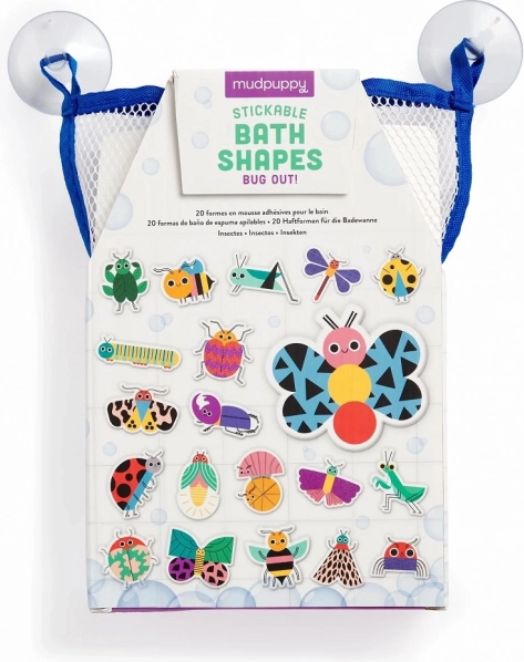 Oplev sjove klæbende skumfigurer til badet med insektmotiv, som efter opblødning sidder fast på både kar og fliser. Børn kan skabe deres egne scener med mariehøns, bier og sommerfugle og udvikle fantasi og finmotorik.