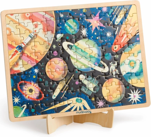 Dette premium træpuslespil fra MUDPUPPY med temaet “Rummission” begejstrer små opdagelsesrejsende og deres forældre. Illustrationen fuld af planeter, kometer og astronauter stimulerer nysgerrighed og læring gennem leg, mens de solide træbrikker sikrer lang holdbarhed.