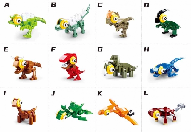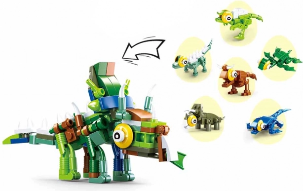 Sluban dinosauræg giver en sjov overraskelse til små byggere. Indeni finder du et mini-byggesæt med en tydelig vejledning, som udvikler finmotorik og fantasi. Når du samler flere æg fra denne serie, kan du sætte de enkelte modeller sammen til en større, sammenhængende model af Tyrannosaurus rex eller Triceratops.