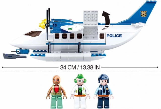Oplev spændende politijagter på vandet! Dette detaljerede politihydrofly måler ca. 34 cm i længden efter samling og har funktionsdele inklusive aftageligt tag på cockpittet, roterende propeller og et forreste maskingevær. Sættet er ideelt til børn fra 6 år, der elsker kreativ byggeri og actionfyldte historier.