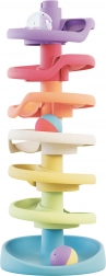 Den sjove kuglebane QUERCETTI Spiral Tower Play ECO+ for de mindste udvikler finmotorik, hånd-øje-koordination og forståelsen af årsag og virkning. Seks spiralformede niveauer med en stor, stabil base sikrer sikker leg, mens kuglerne – én med raslelyd – suser ned ad de farvede baner. Fremstillet af 100% genanvendt plast i serien PLAY ECO+ og i pastelfarver, behagelige at røre ved. Egnet fra 12 måneder.