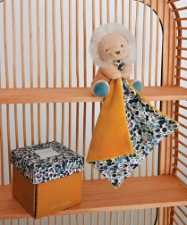 Denne superbløde lille løve med krammetæppe giver baby komfort, ro og tryghed fra de allerførste dage. Den blide tekstur stimulerer sanserne og vækker nysgerrighed, mens den kompakte størrelse på 12 cm er perfekt til små hænder.