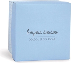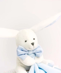Dette gavesæt indeholder en hvid kanin med en blød nusseklud i blå farve, anbragt i en smuk æske klar til at blive givet som gave. Det superbløde materiale giver babyen en følelse af tryghed og komfort, mens den lette klud ligger perfekt i de små hænder.