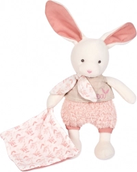 Vi præsenterer en kanin med lyserødt tæppe fremstillet af 100% økologisk bomuld. Denne yndige plysbamse er designet til at ledsage din baby og give blødhed, komfort og en følelse af tryghed.