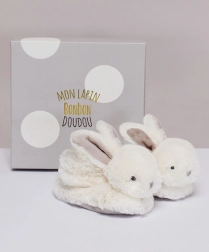 Doudou sæt af kanin bootees med rasler beige