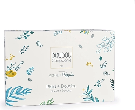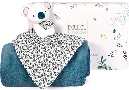 Dette elegante gavesæt kombinerer en blød koala-formet krammeklud og en alsidig plaid i størrelsen 70×100 cm. De fine, åndbare materialer og det omhyggelige håndværk fra DOUDOU Compagnie giver baby tryghed og ro derhjemme, i barnevognen og på farten.