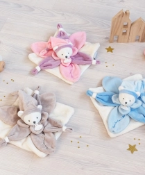 Doudou krammeklud er designet til at følge baby fra de allerførste dage. Den er lavet af meget blide materialer, som er skånsomme mod barnets hud og giver en følelse af varme og tryghed. Den delikate farveharmoni virker både æstetisk og beroligende.