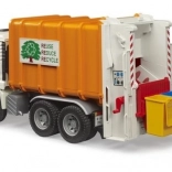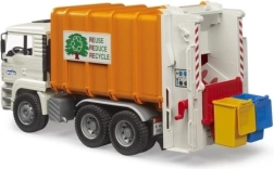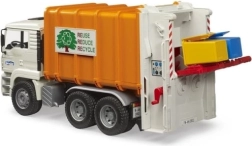 Den realistiske skraldebil BRUDER MAN TGA i skala 1:16 begejstrer både små og store teknikfans. Den har en vippbar kabine, en funktionsdygtig presse med to snegletransportører, åbnebare bagdøre med lås og to medfølgende skraldespande. Fremstillet af holdbar ABS-plast i Tyskland, kompatibel med Bworld-figurer og ideel til børn fra 3 år.
