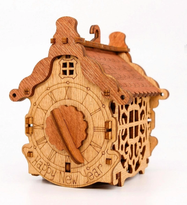 Denne dekorative trææske i form af et lille hus med urskive og teksten “Happy New Year” kombinerer en smart hjernetræner-mekanisme med et stilfuldt design. Indeni er der plads til en lille ting, som modtageren først får adgang til efter at have løst den hemmelige lås. Med ophængsøjet kan den nemt placeres på juletræet eller en gren.