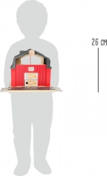 Denne træfarm fra SMALL FOOT er et ideelt legesæt til børn fra 3 år. Den byder på realistiske legeelementer – lade med dobbeltdøre, funktionsdygtig kran til opbevaring af hø på første sal og magnetiske baller, som nemt kan løftes og transporteres med den medfølgende traktor med trailer. Der medfølger også en hest, ko, gris og seks dele indhegning.