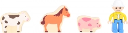Oplev landlig charme med denne kvalitetsfarm i 100% FSC-træ og plast. Sættet indeholder en lade med funktionsdygtig kran, traktor med trailer og magnetiske høballer. Børn får glæde af rig fantasifyldt leg, udvikler finmotorik, koordinering og kommunikationsevner. Der er dyr, indhegning og åbningsbare døre – på denne gård er der altid liv!
