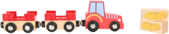 - Lade med kran og dobbeltdøre, traktor med trailer, høballer (magnetiske), hest, ko, gris, 6× indhegningsdele