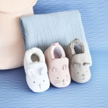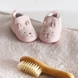 Søde lyserøde babysko til 0–6 måneder i en elegant gaveæske. Takket være det bløde plysfor indeni holder de små fødder varme og giver babyens outfit komfort, blødhed og et strejf af fantasi. De er pyntet med et fint broderet katteansigt og er lavet af 100% polyester, der opfylder europæiske CE-standarder.