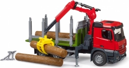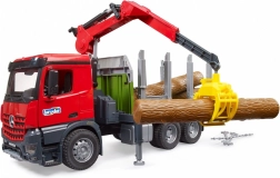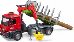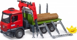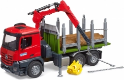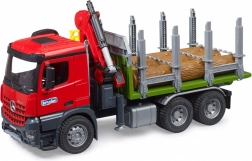 Bruder tømmertransport er udstyret med en drejende kran og grab, der muliggør nem og effektiv ladning og losning af tømmer.