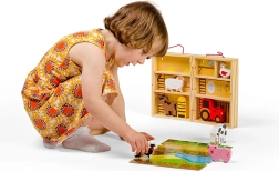 To nedklappelige dele skaber en ledescene, og efter legen pakkes alt væk indeni. Nemt at tage med, hurtigt at rydde op og ingen bortkomne dele.