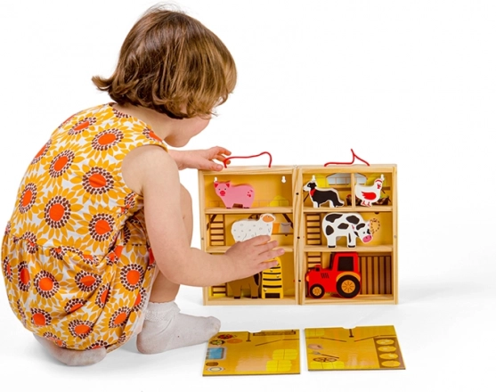 Den søde bærbare gård i en praktisk æske fra Bigjigs Toys underholder børn fra 18 måneder både hjemme og på farten. Indeholder trædyr, traktor, en bikube og en udfoldelig legeunderlag. De robuste træfigurer passer perfekt i små hænder og støtter kreativitet, fantasi og finmotorik.
