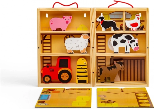 Børn kan udforske gårdlivet, navngive dyrene og skabe deres egne historier. Sættet udvikler ordforråd, motorik og sociale færdigheder ved fælles leg. Takket være de klare farver og autentiske gårddetaljer er legen naturligt tiltrækkende og langtidsholdbar sjov.