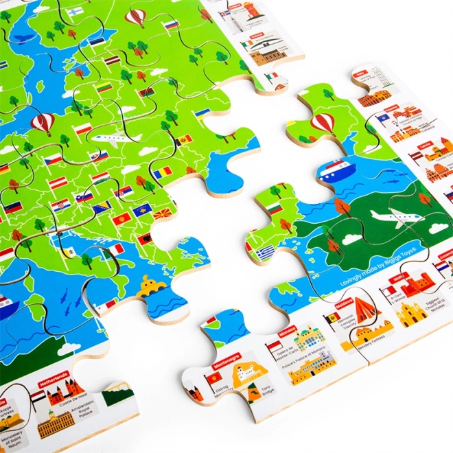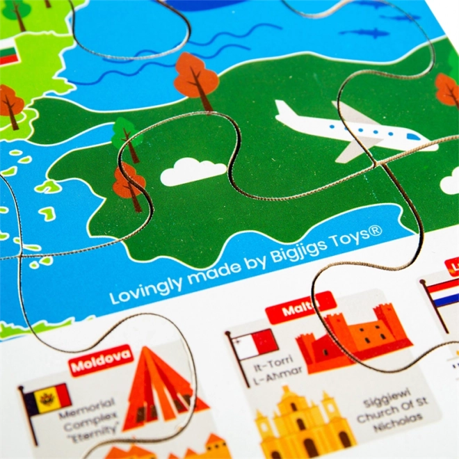 Udforsk Europa på en legende måde med træ-gulvpuslespillet fra Bigjigs Toys – Europakort med 48 brikker. Børn fra 2 år træner finmotorik, koncentration og lærer at kende flag og berømte seværdigheder under samlingen. De store, robuste brikker er nemme at holde, og puslespillet er lavet af kvalitetstræ fra ansvarlige kilder, der opfylder europæiske sikkerhedsstandarder.