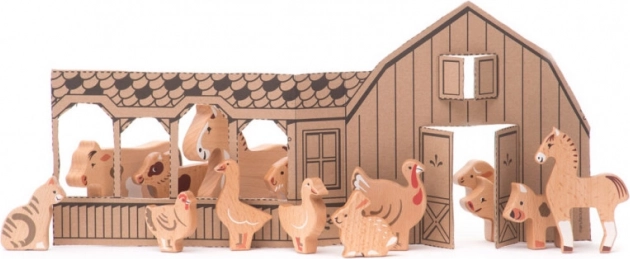 Emballagen er gennemtænkt – klip blot kartonen langs de angivne linjer, og du får med det samme en stald til dyrene. Materialerne stammer fra naturlige kilder og kan nemt genbruges. Legetøjet opfylder europæiske sikkerhedsstandarder og er sundhedsmæssigt ufarligt.