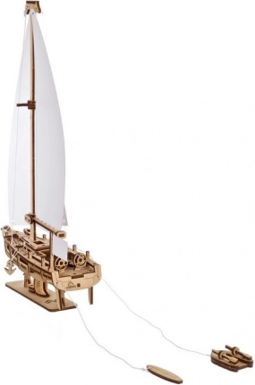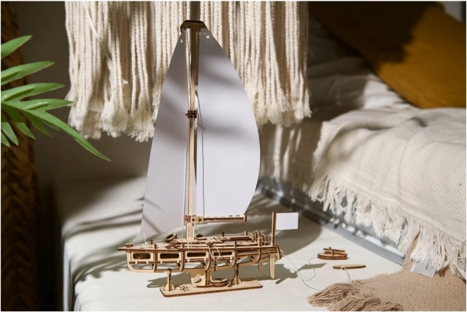 - Materiale i høj kvalitet – præcist udskårne trædele, rene linjer, hvidt sejl.