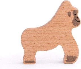 Sættet indeholder realistisk stiliserede figurer: elefant, gorilla, zebra, løve, tiger, næsehorn, slange, giraf, krokodille, tukan og abe. Hver figur er håndfærdiggjort i et minimalistisk design, der fremhæver træets naturlige åre. Takket være de glatte kanter og den solide konstruktion er legetøjet behageligt at røre ved og tåler daglig leg.