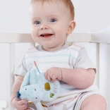 Den diskrete lyd fra raslen stimulerer høresansen og beroliger samtidig baby under leg og ved puttetid.