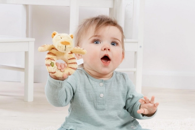 Plys rangle Tiger er et glimrende valg til at stimulere sanserne og give trøst til nyfødte. Med sit attraktive design inspireret af fortællingerne om Peter Plys bringer den glæde og vækker nysgerrighed. Den er udstyret med en blid raslelyd, som opmuntrer børn til at udforske deres sanser.