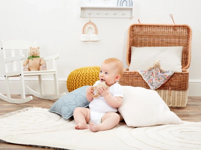 Denne charmerende rangle med hovedet af BJØRNEN PÅHUG på en glat træring glæder de mindste med en blid lyd og en dejligt blød fornemmelse. Den ergonomiske form støtter barnets naturlige greb og udvikling af finmotorikken.