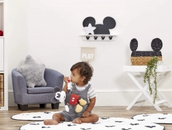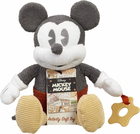 Denne bløde MICKEY MOUSE Activity er designet til sikker udforskning for babyer. Den kombinerer en kælen plysbamse med en praktisk bidering, som giver lindring ved tandspring. MICKEYS ikoniske detaljer, de røde shorts og gule sko, inviterer til berøring og vækker børns nysgerrighed.