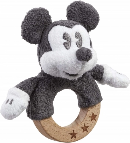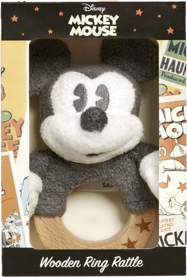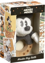 Opdag den ideelle første legeting til baby: en rangle med ikoniske MICKEY MOUSE på en solid bøgetræring dekoreret med små stjerner. Takket være den bløde plys og det glatte træ er den sikker, behagelig at røre ved og støtter tidlige færdigheder.