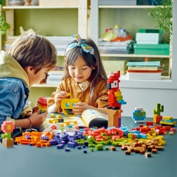 Dette alsidige byggesæt indeholder ikoniske klodser i mange farver, inklusive den legendariske 2×4-klods. Der medfølger en overskuelig brochure med vejledninger til sjove modeller og tips til at inspirere børn til egen skabelse. Digitale vejledninger findes også i LEGO Builder-appen.