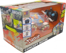 Opdag en unik kombination af sjov og teknik. Den transparente krop på RC-bilen lader dig følge arbejdet i de farvede gear og mekanikken i realtid. Røgeffekten aktiveres nemt – fyld beholderen med vand, tryk på knappen, og nyd det visuelle show under kørslen.