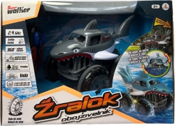 Få fri bevægelighed uden terrænbegrænsninger. Denne amfibiske RC-haj er designet til sjov på land og i vand – fra sne og jord til græs. Med en kvik maksimal hastighed på 7,5 km/t og præcis kontrol får du en dynamisk kørsel og glatte manøvrer.
