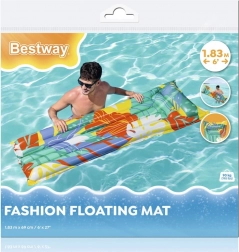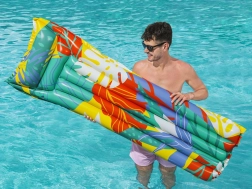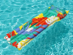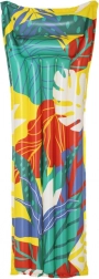 Vi præsenterer den oppustelige Bestway-madras i livlige tropiske farver, ideel til sommerafslapning ved havet, søen, poolen eller i haven. Madrassen er fremstillet af holdbart PVC-materiale og har en pude med to kamre for ekstra komfort.