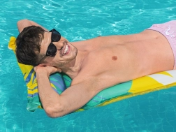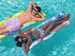 Madrassen i et livligt tropisk design bringer farverig stemning til enhver stund ved vandet.