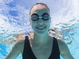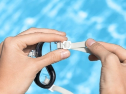 Slidstærke linser giver klart udsyn under vand og beskytter øjnene mod solen ved udendørs bassiner.
