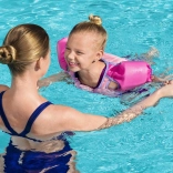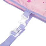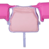 Svømmevesten er designet til at give sikkerhed og tryghed under de første svømmetag. Takket være den solide lukning og de justerbare stropper tilpasser den sig perfekt til barnets krop og giver samtidig fri bevægelighed. De anvendte materialer er holdbare og samtidig skånsomme mod huden, hvilket sikrer komfort selv ved længere tid i vandet.