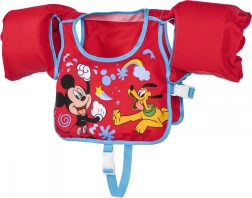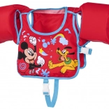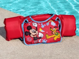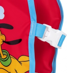 Det tekstile, hurtigttørrende materiale føles behageligt og klæber ikke til huden som gummi. Det glade motiv med Mickey Mouse og Pluto motiverer til leg og svømmeundervisning, og den markante røde farve øger synligheden i vandet. Anbefalet brystomkreds er 56 cm. Vesten er beregnet til brug kun i vand, inden for rækkevidde af en voksen.