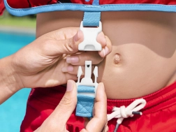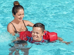 Skumfyld i kombination med ærmer og brystpanel støtter stabiliteten i vandet og giver børn selvtillid, når de øver svømmefærdigheder.
